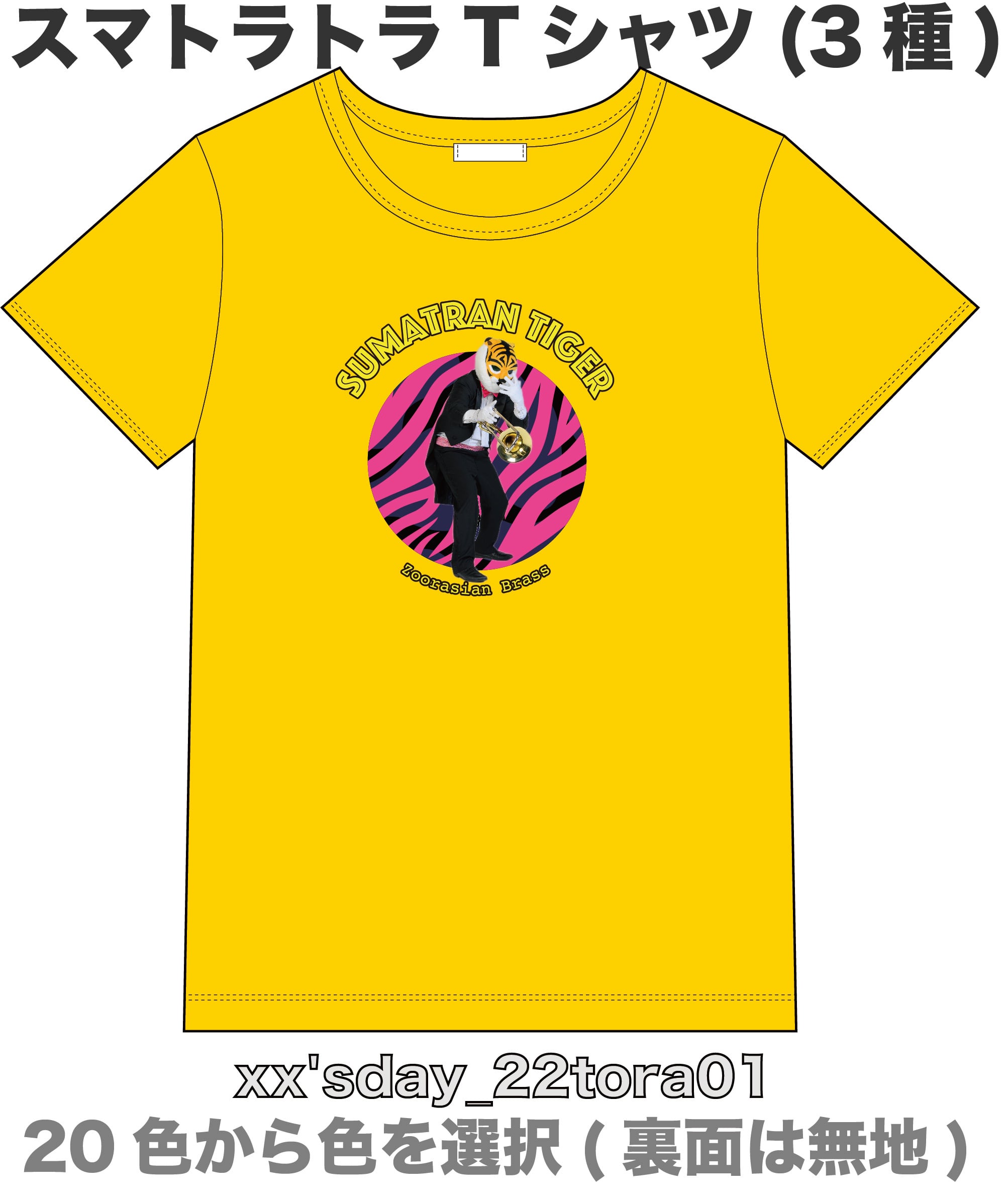 スマトラトラさんと言えばスマトラピンクですが、いろんな色のTシャツを試してみてください!
