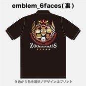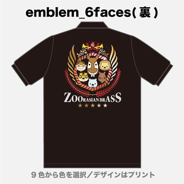 胸元にオカピマーク、背中にズーラシアンブラス6人の顔のイラストのエンブレムが入った